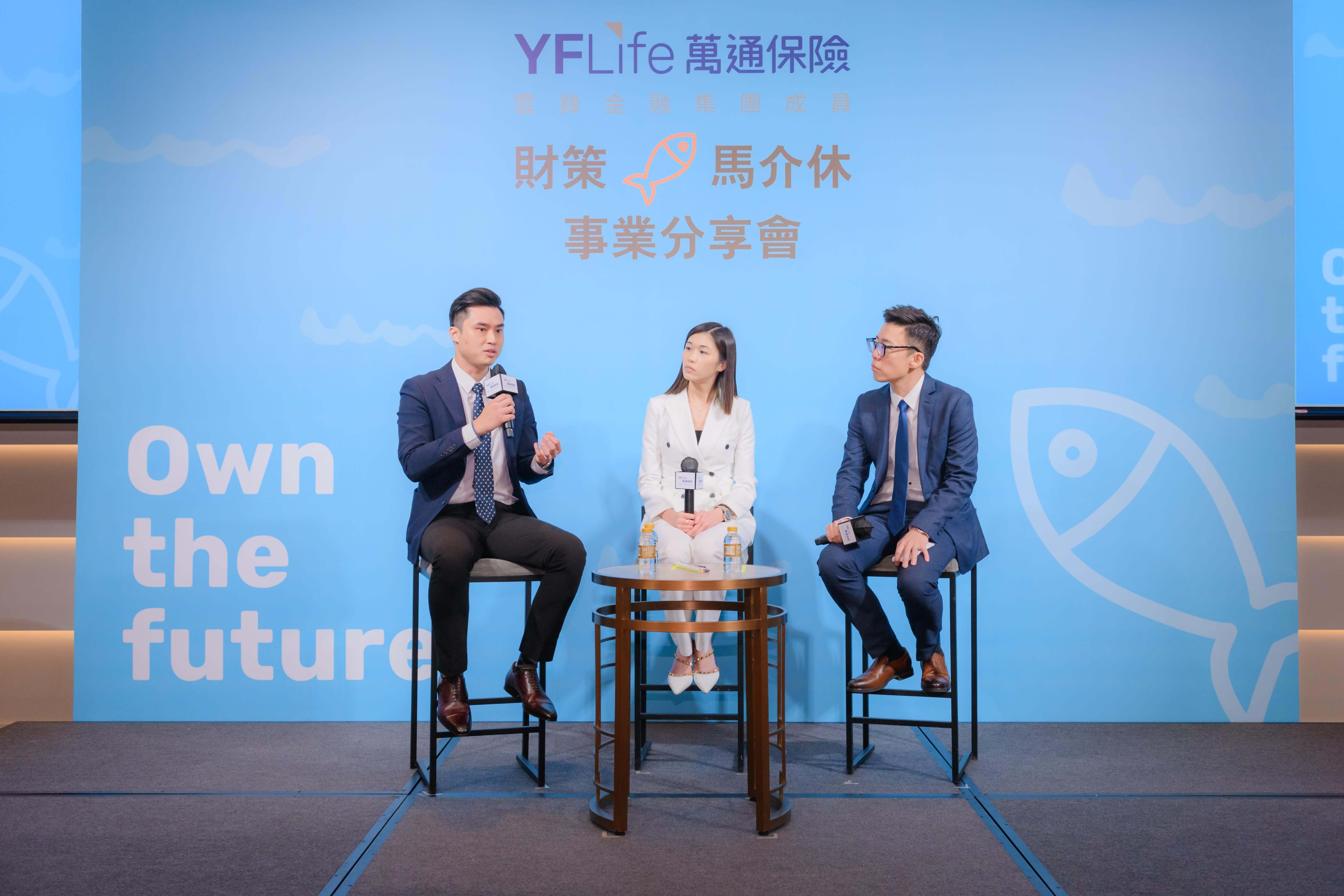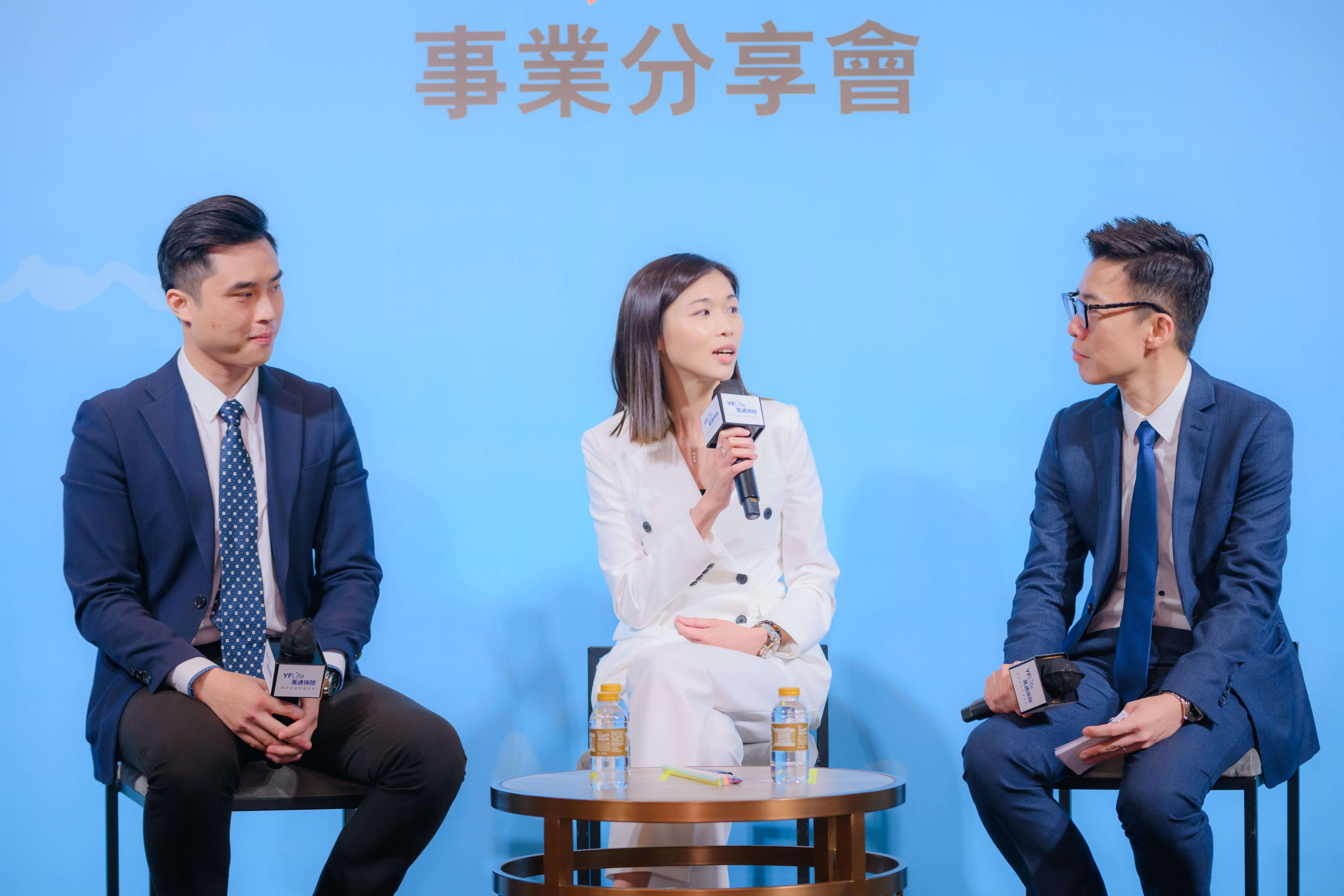 万通保险资深分区经理阮小欣小姐(中)于万通保险《财策"马介休"》 事业分享会上分享加入财策行业的无限可能。