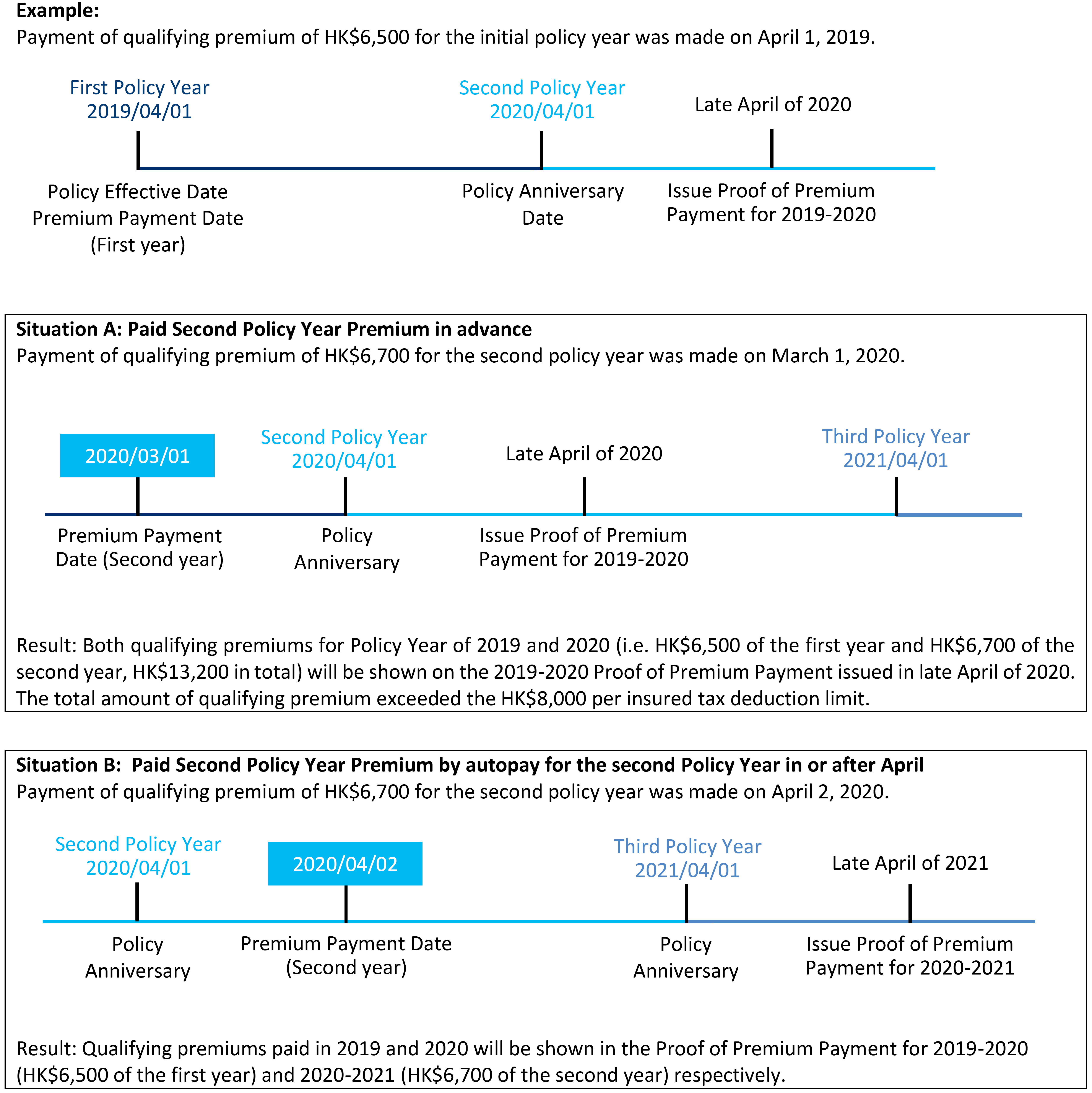 Since you paid the qualifying premium on March 1, 2020 (i.e. in the 2019/2020 assessment year) instead of in the 2020/2021 assessment year, you may claim the tax deduction for the 2019/2020 assessment year. To be eligible for tax deduction claim under 2020/2021 tax assessment year, the premium must be paid on or after April 1, 2020.